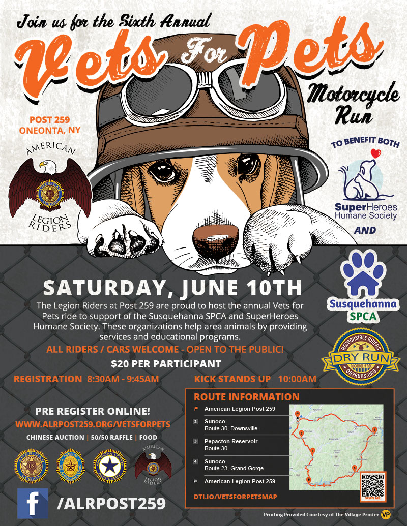 We would like to thank the riders, passengers, sponsors, donors, and volunteers who helped make our 8th Annual Vets for Pets run a great success!